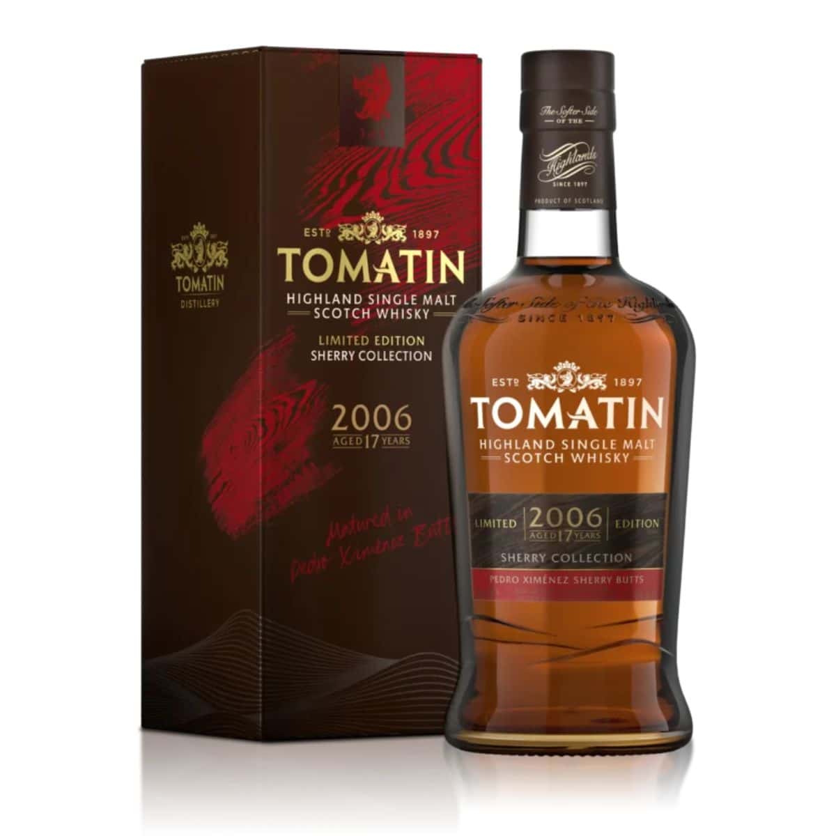 Tomatin 17 Años Sherry Px , parte 3 de la Colección Jerez, La Edición Pedro Ximénez se madura en Botas Pedro Ximénez.